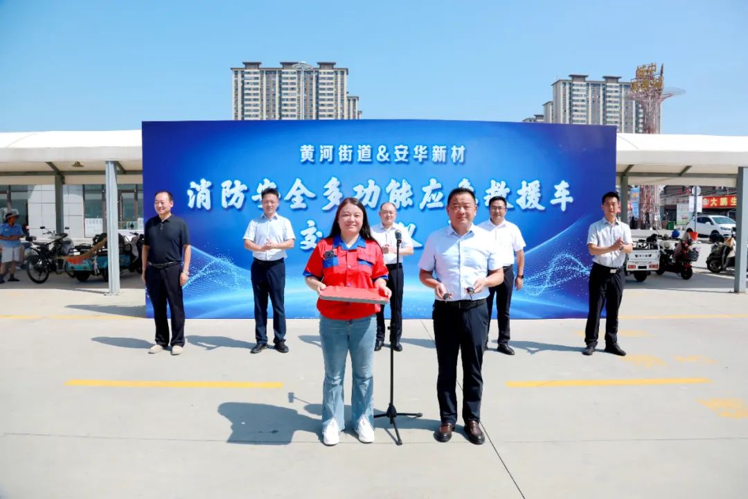 交付儀式上,宿遷經濟技術開發區黃河街道黨工委副書記、辦事處主任李崇高,黨工委委員、人武部長龔守寬,辦事處副主任張賀,安華新材公司閆總、吳總以及街道各社區黨委書記、安全生產工作人員出席儀式。